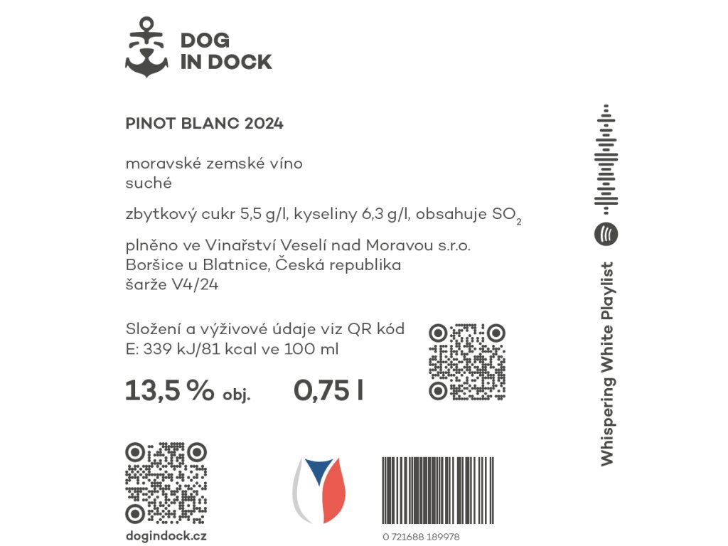 DOG IN DOCK, RULANDSKÉ BÍLÉ 2024, SUCHÉ, 0,75 L