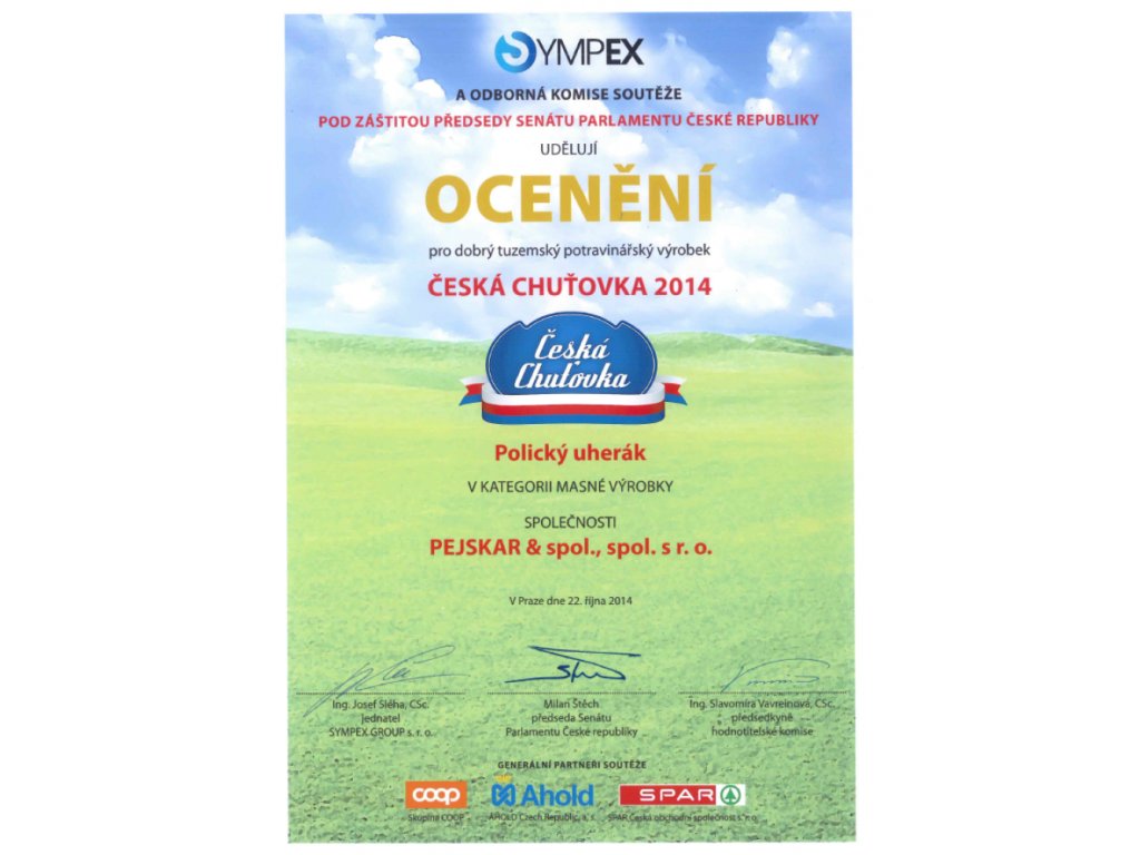 Originální velikonoční variace na klasický Polický uherák. Tradiční fermentovaný salám s typickou aromatikou a plnou, výraznou chutí, který v období Velikonoc zaujme netradičním vzhledem připomínajícím pletenou pomlázku. Kombinuje poctivou řemeslnou výrobu, charakteristické kořenění a nezaměnitelný chuťový profil, na který jsou milovníci uheráku zvyklí.