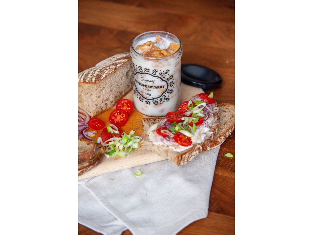 Tyto škvarky jsou opravdovou delikatesou pro milovníky tradičních masných pochoutek. Křupavé vepřové škvarky, usmažené dozlatova, jsou bohatě zalité sněhobílým sádlem — výsledek je luxusní textura i chuť. S hmotností 320 g jde o vydatné balení, které uspokojí jako svačina, příloha nebo chuťovka ke skleničce. MOQ je 12 ks, což je skvělé pro větší objednávky, firemní pohoštění nebo společné posezení.